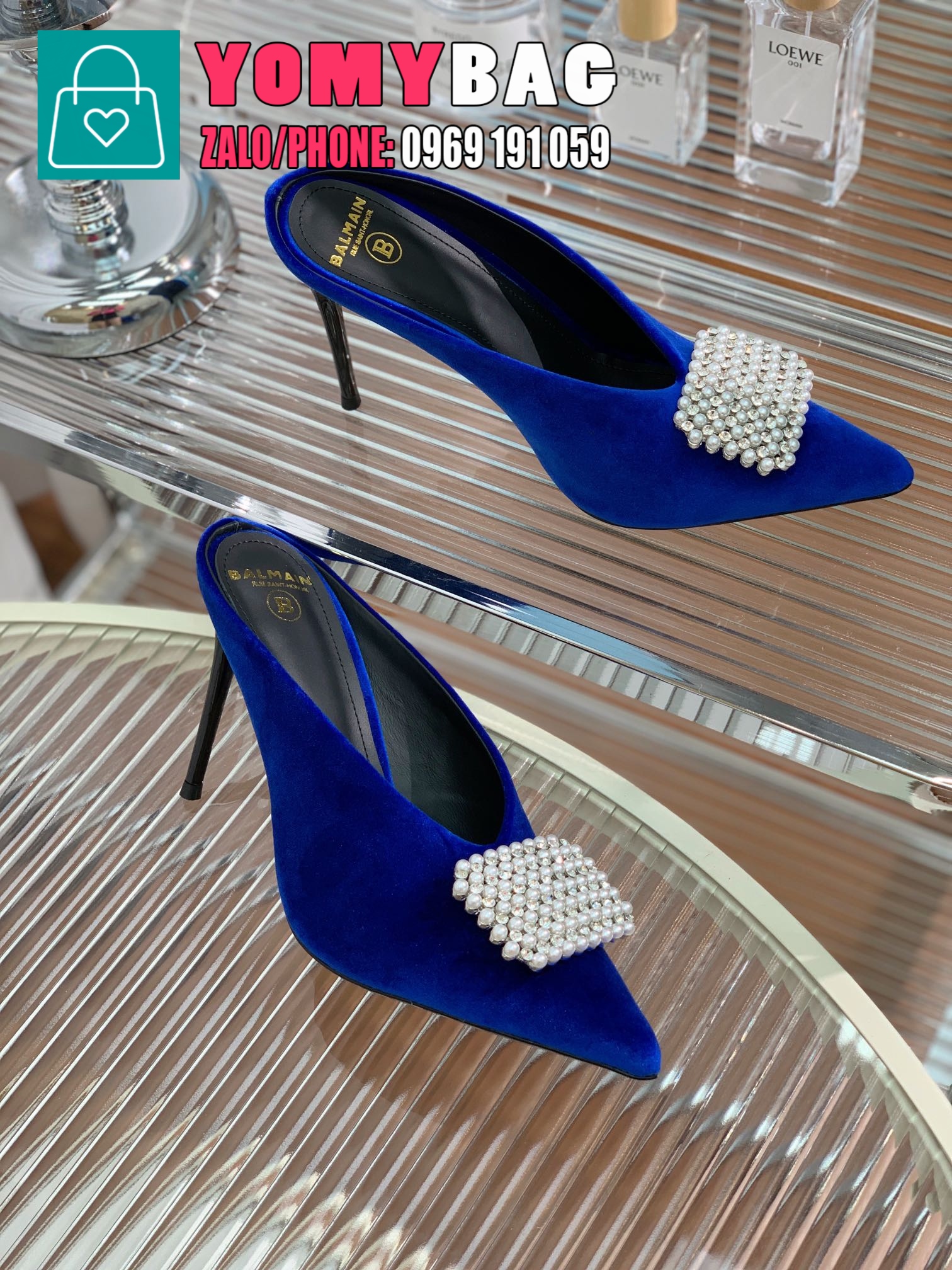 Dép cao gót balmain 9,5 cm. Giày nhung sang trọng